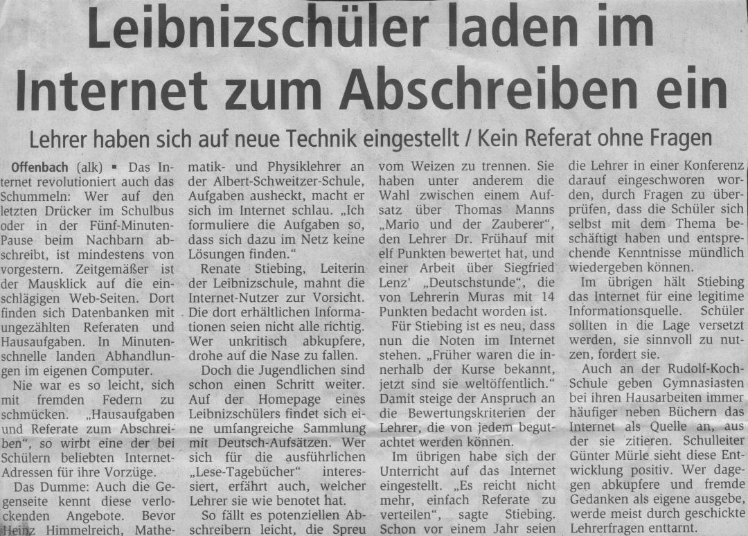 Ganz interessant für alle Schüler und Ehemalige des Leibnizgymnasiums in Offenbach